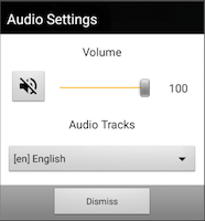 The AudioSettings class displays a dialog allowing the user to select an audio track and to set the playback volume. Also handles the selections and interacts with the MediaPlayer via MediaPlayerControl.