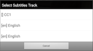 /** * Constructor * @param context The activity's context * @param playerControl interface class using com.uplynk.widgets.MediaController.MediaPlayerControl */ public TrackSelector(Context context, MediaController.MediaPlayerControl playerControl) /** * Displays the track selection dialog. Dialog is dismissed upon selection and the selection * is applied to the MediaPlayer * @param selectionType The type of track to select: AUDIO or SUBTITLES */ public void showTrackOptions(TrackSelectionType selectionType)